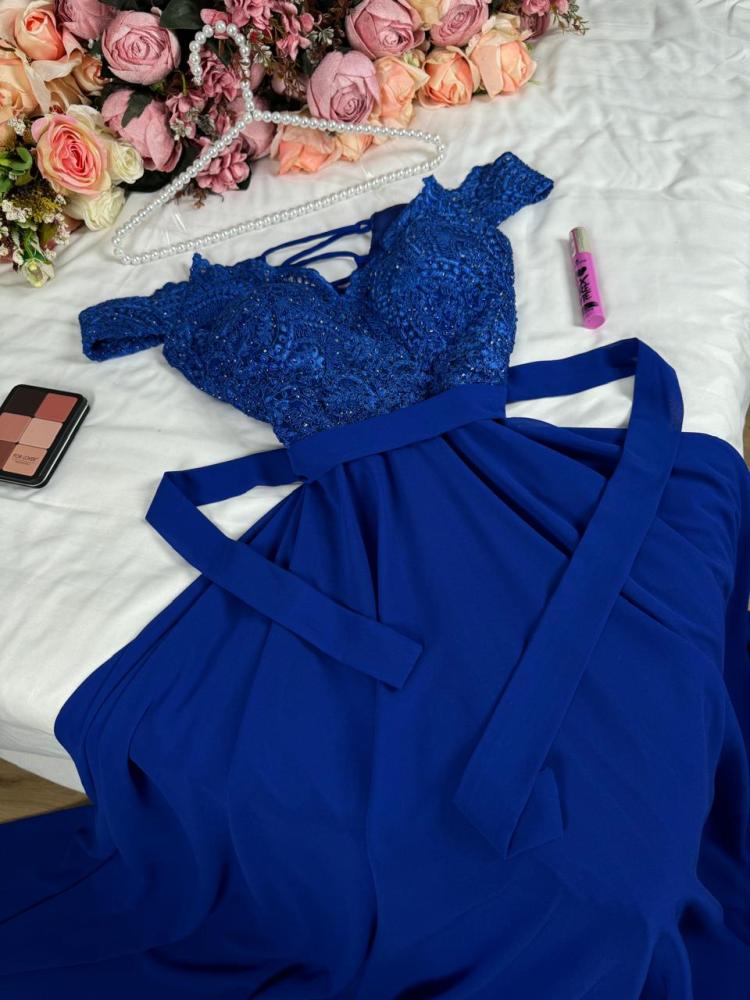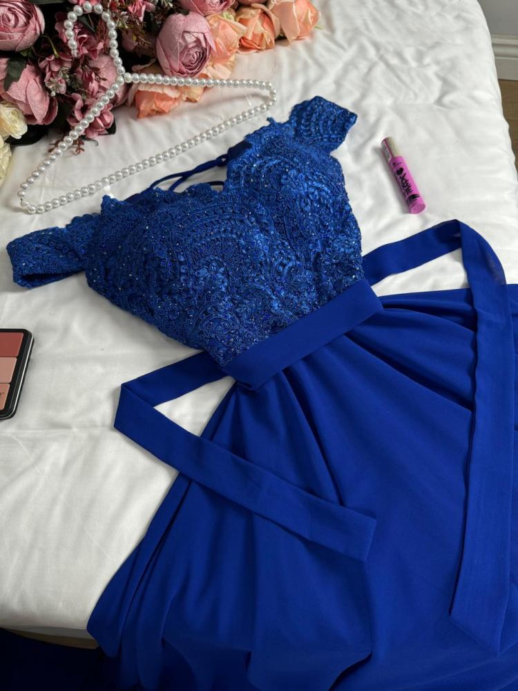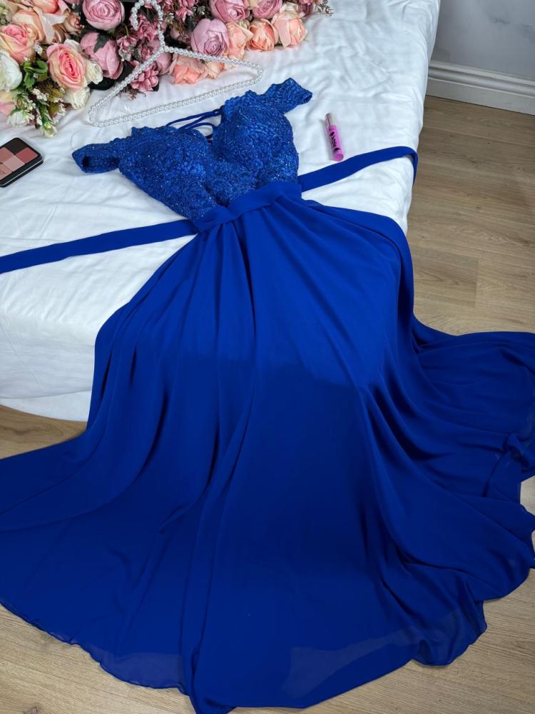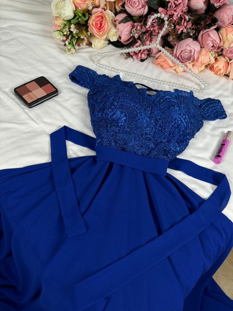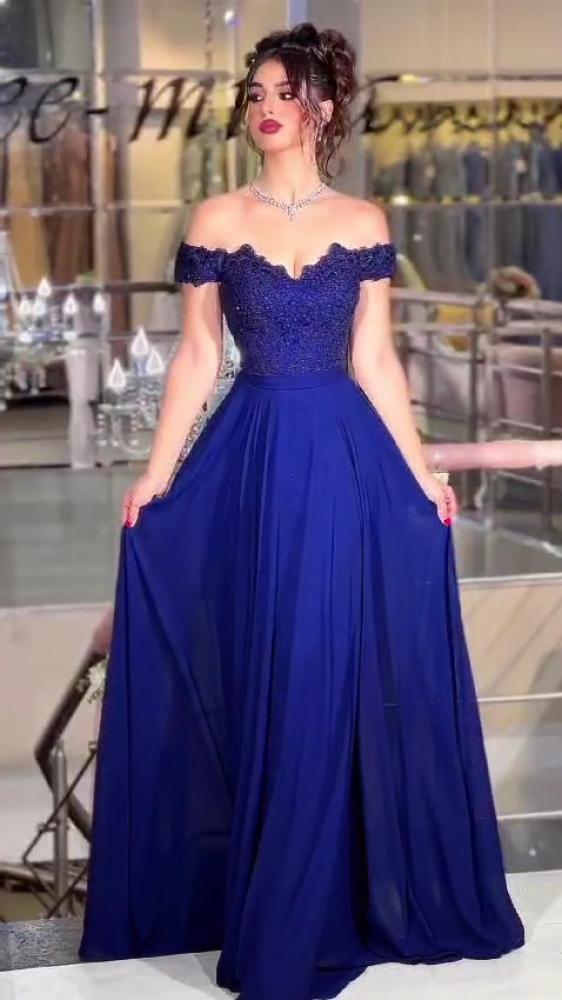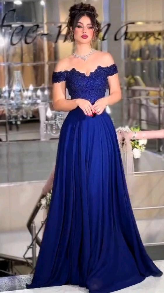 فساتين الالوان : نيلي الخامه : دانتل على فصوص دبل +كلوش ️