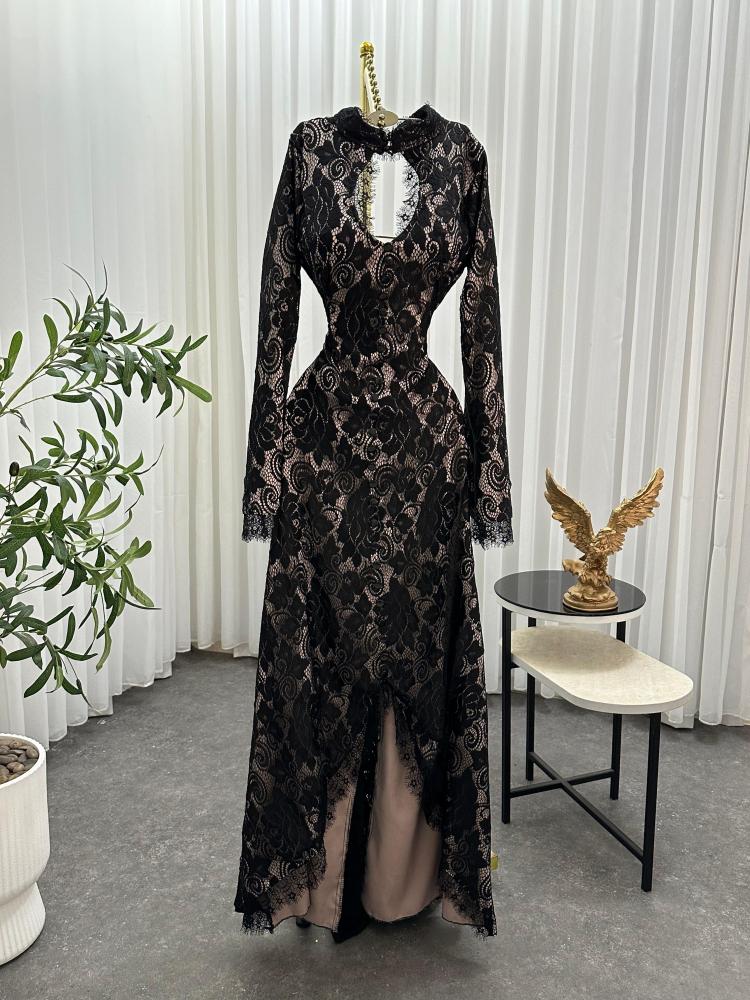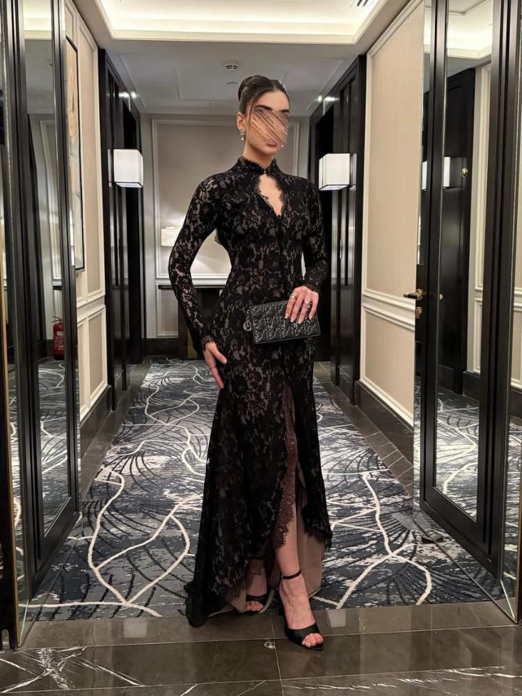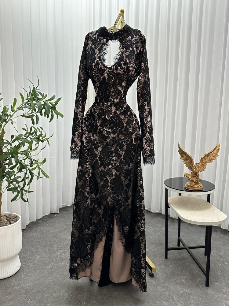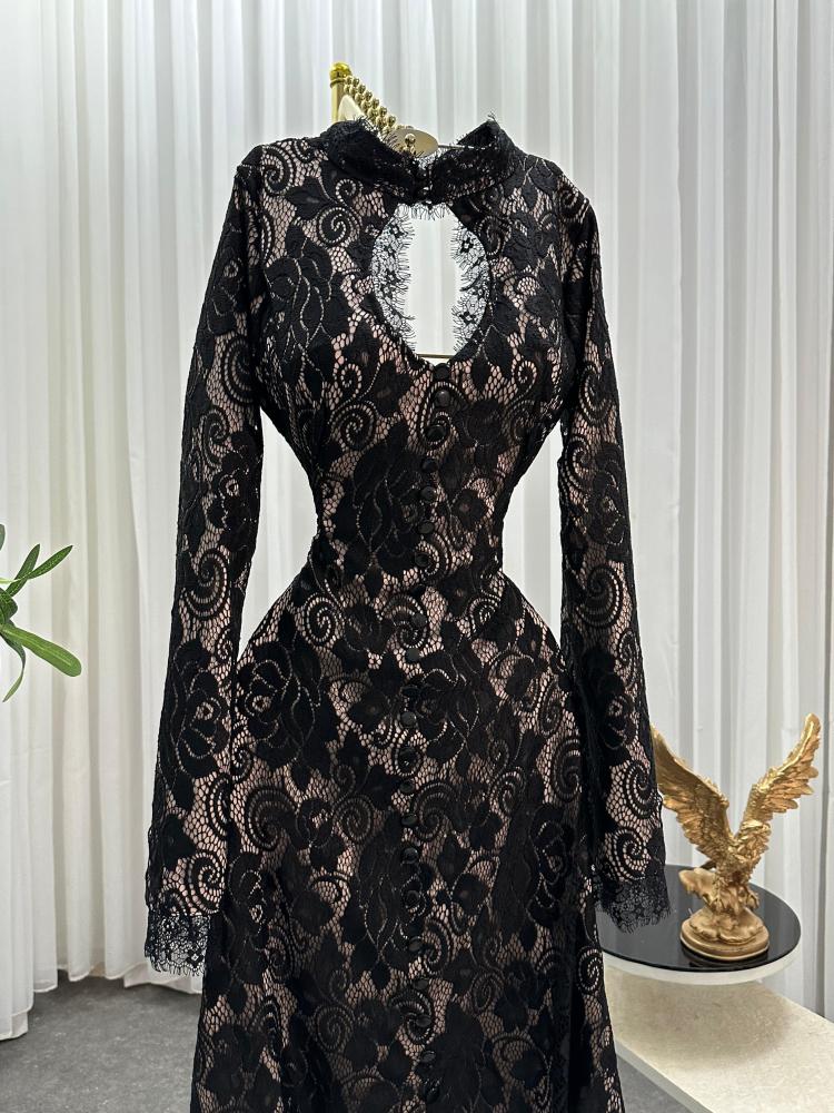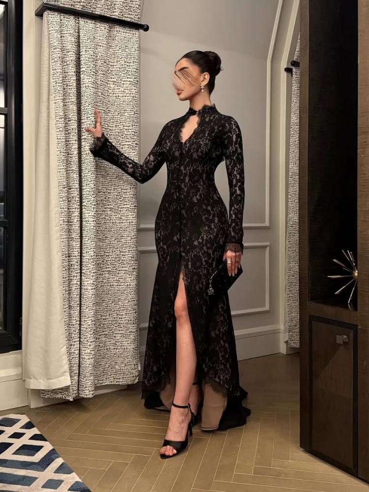 فساتين الخامه : دانتيل راقي + بطانه + زراير اللون اسود
