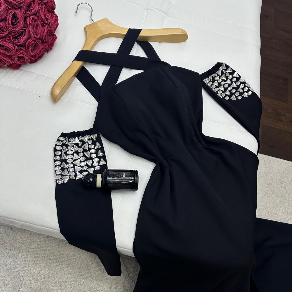 فساتين كولكشن سهرة معلومات القماش: خامه باربي +فصوص كرستال الالوان: اسود