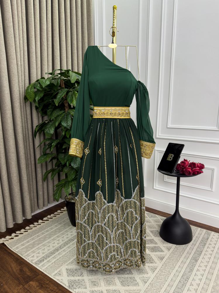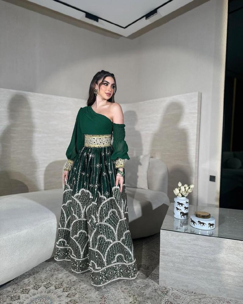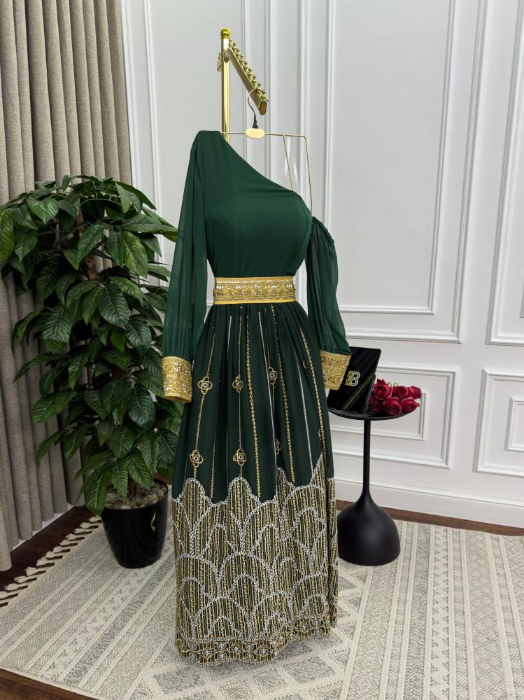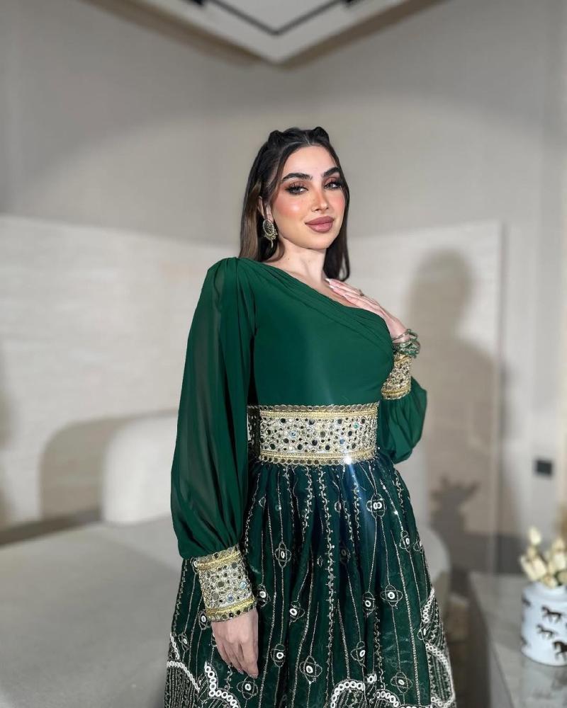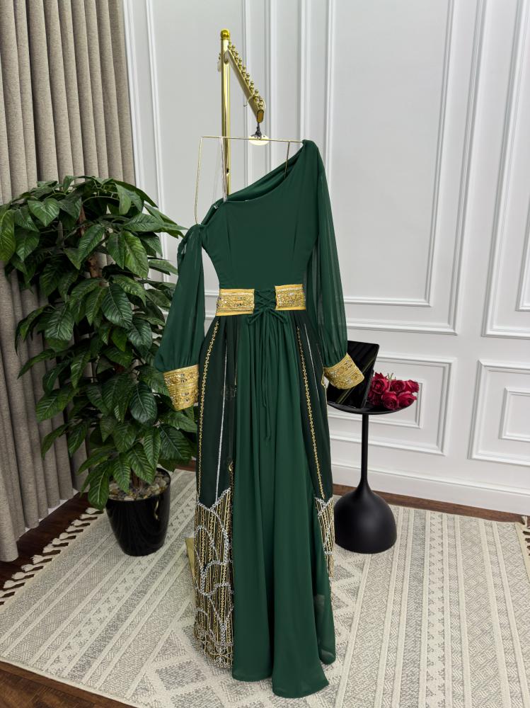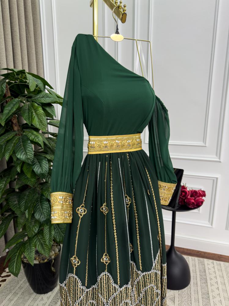 فساتين الخامه . جورجيت . تطريز كمبيوتر على فصوص ذهبي