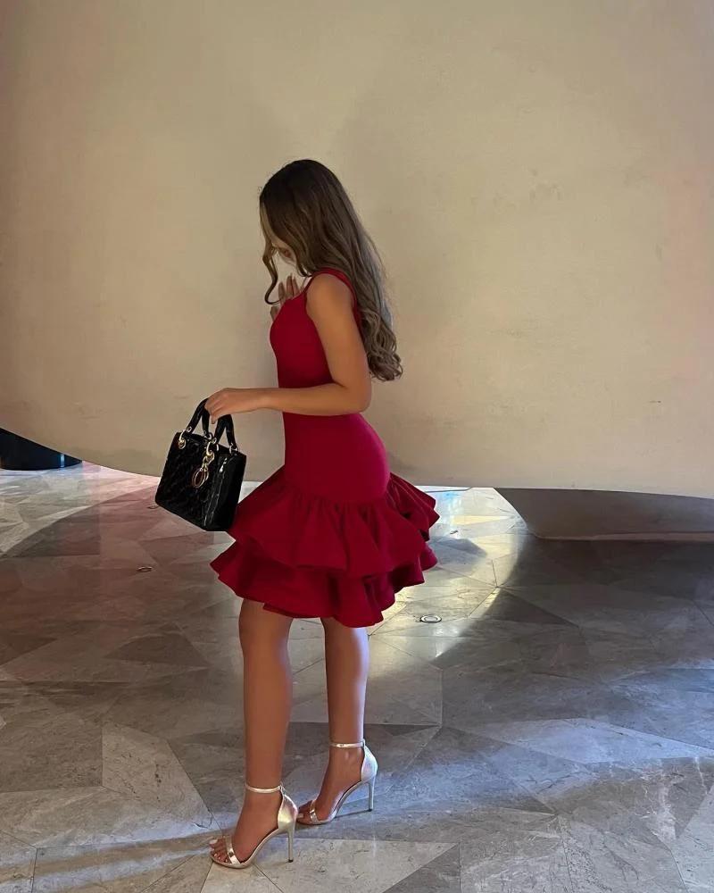 فستان قصير ناعم علاقي بلون أحمر من قماش التفتة الباربي سيكون تصميمًا جريئًا ومميزًا. قماش التفتة يمنح الفستان لمسة فاخرة ولمعانًا لافتًا، بينما اللون الأحمر يضيف له جرأة وجاذبية. تصميم العلّاقة (الكتف المكشوف) يضفي لمسة أنثوية وشبابية، مما يجعله مثاليًا للمناسبات المسائية أو الحفلات. الفستان القصير يبرز القوام بشكل جذاب، في حين أن ملمس قماش التفتة يعطيه طابعًا فاخرًا يتناسب مع الأجواء الاحتفالية.